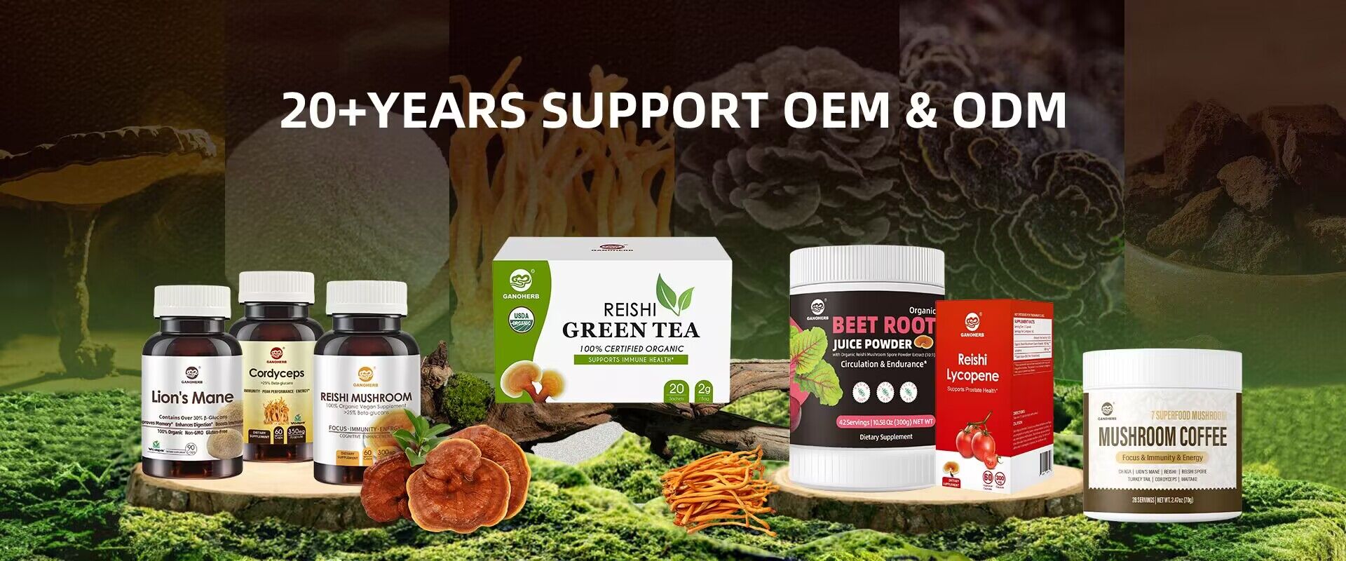 GanoHerb supply a variety of mushroom raw materials, mushroom coffee, mushroom tea,mushroom capsules, and mushroom blends, all formulas can be customized. GanoHerb’s products have been sold to more than 30countries for 20+ years.