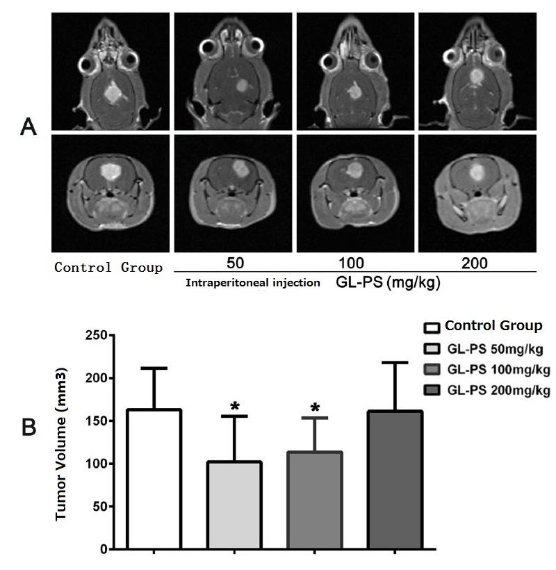 Figure 1 The inhibitory effect of GL-PS on brain tumors (gliomas)