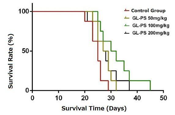 Figure 2 The effect of GL-PS on the life span of rats with brain tumors (gliomas)