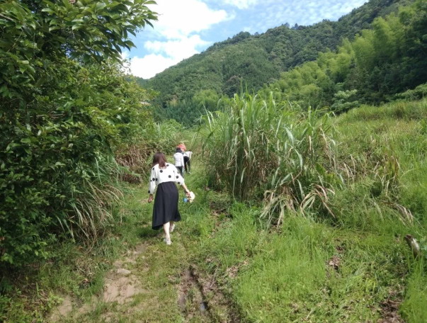 The first group of the Reishi-exploring team struggled on the muddy path. The surrounding mountains became lusher against the blue sky and white clouds. The sound of birds singing is a unique note in the deep mountains.