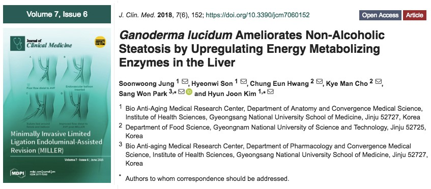 Jung S, et al. Ganoderma lucidum ameliorates non-alcoholic steatosis by upregulating energy metabolizing enzymes in the liver. J Clin Med. 2018 Jun 15;7(6). pii: E152. doi: 10.3390/jcm7060152.