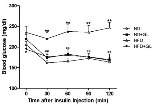 Ganoderma lucidum improves the ability of the body of HFD-fed mice to regulate blood sugar.