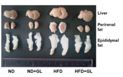 It can be seen from Figure 2 that Ganoderma lucidum can significantly reduce fat accumulation in the liver and other internal organs caused by a high-fat diet.