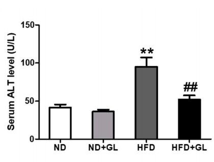 Figure 5 The effect of Ganoderma lucidum on hepatitis indexes in HFD-fed mice