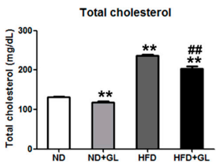 Figure 6 The effect of Ganoderma lucidum on serum total cholesterol in HFD-fed mice