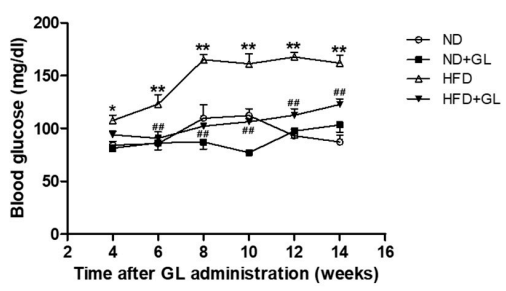 Figure 7 The effect of Ganoderma lucidum on blood glucose in HFD-fed mice
