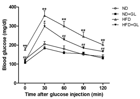 Figure 8 The effect of Ganoderma lucidum on glucose tolerance in HFD-fed mice