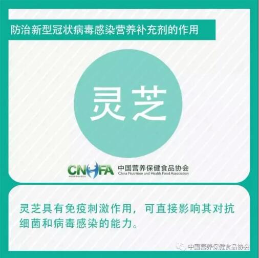 “The second popular science series article on precise assistance in the prevention and treatment of novel coronavirus infections in terms of nutrition – the function of nutritional supplements” published by China Nutrition and Health Food Association announced to the public 12 kinds of nutritional supplements that help prevent and cure novel coronavirus, including Ganoderma lucidum.