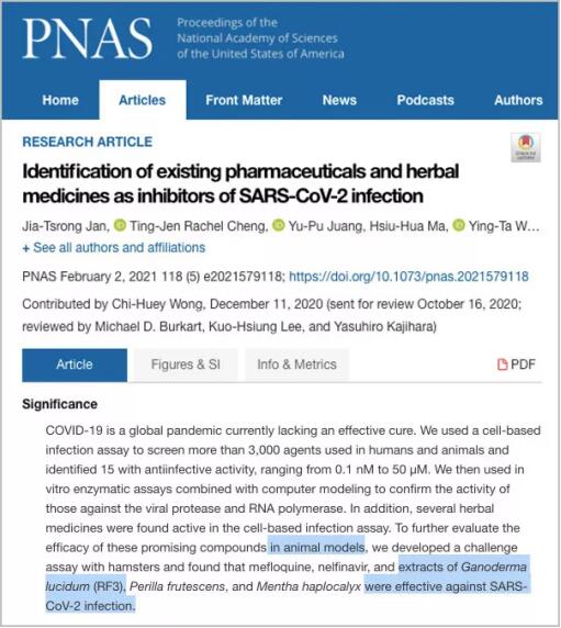 February 2021-Proceedings of the National Academy of Sciences: Ganoderma polysaccharides can reduce the amount of novel coronavirus in animal lungs.