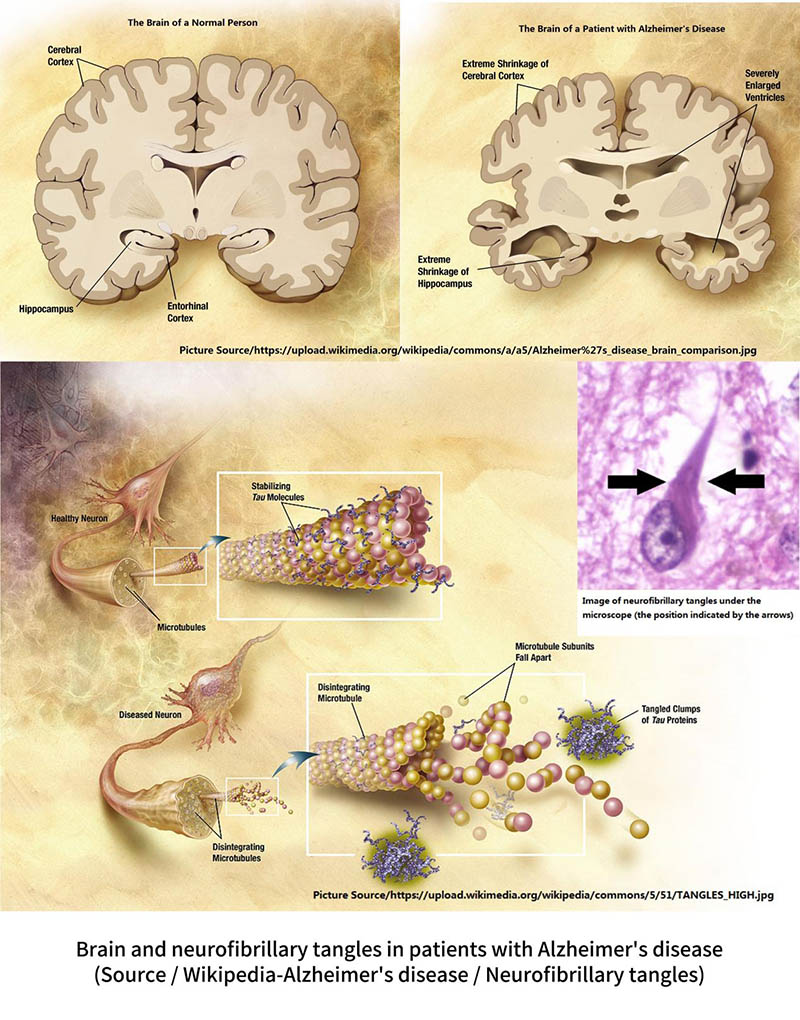 Under normal circumstances, tau protein binds to the cytoskeleton (microtubules) to help the formation and stability of the cytoskeleton. However, the tau protein in the brain of patients with Alzheimer’s disease will mutate and cannot bind to the cytoskeleton. As a result, the tau protein will aggregate into clusters to form so-called “neurofibrillary tangles”, which accumulate in the cells and interfere with the function of cells. The cytoskeleton lacking the tao protein will gradually become distorted and disintegrated, leading to cell death.
