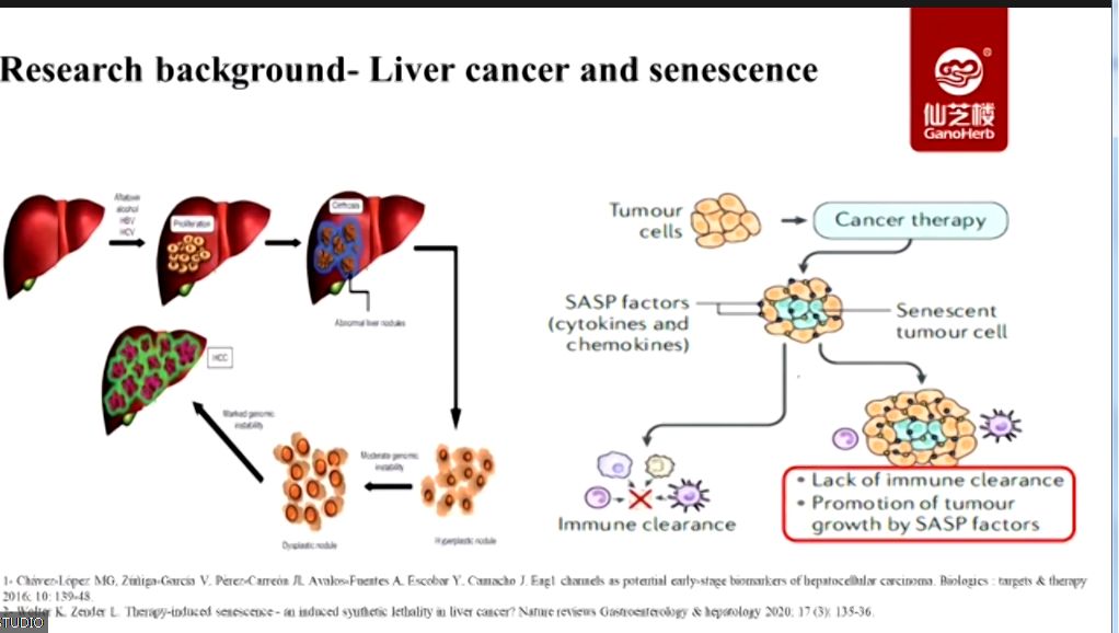 Under the guidance of Professor Jianhua Xu, director of the Fujian Provincial Key Laboratory of Pharmacology of Natural Medicine, School of Pharmacy, Fujian Medical University, researchers at the GanoHerb Postdoctoral Research Station used the chemotherapeutic drug doxorubicin (ADR) to induce liver cancer cell senescence and then treated with Ganoderma lucidum triterpenoid complex NT to analyze its effects on the expression of senescence marker molecules of senescent liver cancer cells, the proportion of senescent cells, the apoptosis and autophagy of senescent cells and the senescence-associated secretory phenotype (SASP).