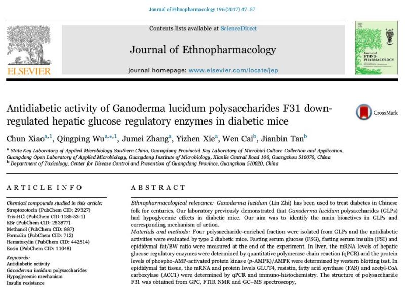 As early as 2012, Guangdong Institute of Microbiology and Center for Disease Control and Prevention of Guangdong Province jointly issued a report stating that the high molecular weight polysaccharides (GLPs) extracted from the hot water extract of Ganoderma lucidum fruiting bodies have a good hypoglycemic effect for type 2 diabetes (T2D).