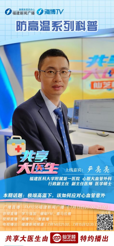 On the evening of July 13th, the program “Shared Doctors” invited Yan Liangliang, a cardiovascular surgeon from the First Affiliated Hospital of Fujian Medical University, to bring us a science lecture on how to deal with cardiovascular accidents under high temperatures.