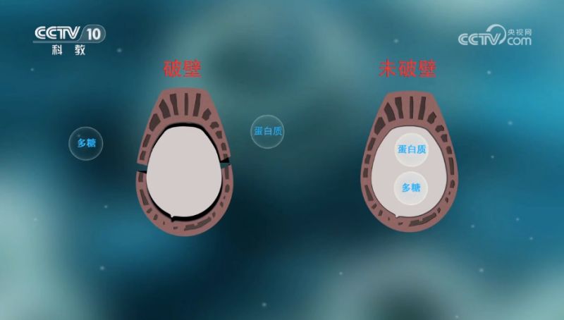 Zhang Jinsong: Under a microscope, the “sporoderm-unbroken” spore powder appears like watermelon seeds, while the “sporoderm-broken” spore powder is broken into fragments. We extracted 1 gram of “sporoderm-unbroken” spore powder and “sporoderm-broken” spore powder respectively to measure the polysaccharide content. It was found that the “sporoderm-unbroken” spore powder yielded 26.1 milligrams of polysaccharides, while the polysaccharide content of the spore powder increased to 38.9 milligrams after breaking the sporoderm.