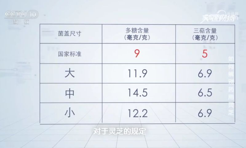 Select the same variety of Ganoderma, under the same cultivation conditions, and use three Ganoderma of different sizes as comparison samples to measure their polysaccharide and triterpene content.