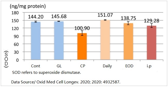 In other words, in this experimental design, all groups receiving cisplatin and Ganoderma lucidum were given Ganoderma lucidum before the cisplatin injection. This is slightly different from the animal experiment on “Ganoderma lucidum protects the liver vs. Cisplatin hepatotoxicity” in which cisplatin was given on the first day of the experiment (Cisplatin and Ganoderma lucidum are used together from the beginning, or cisplatin was given first and then Ganoderma lucidum).
