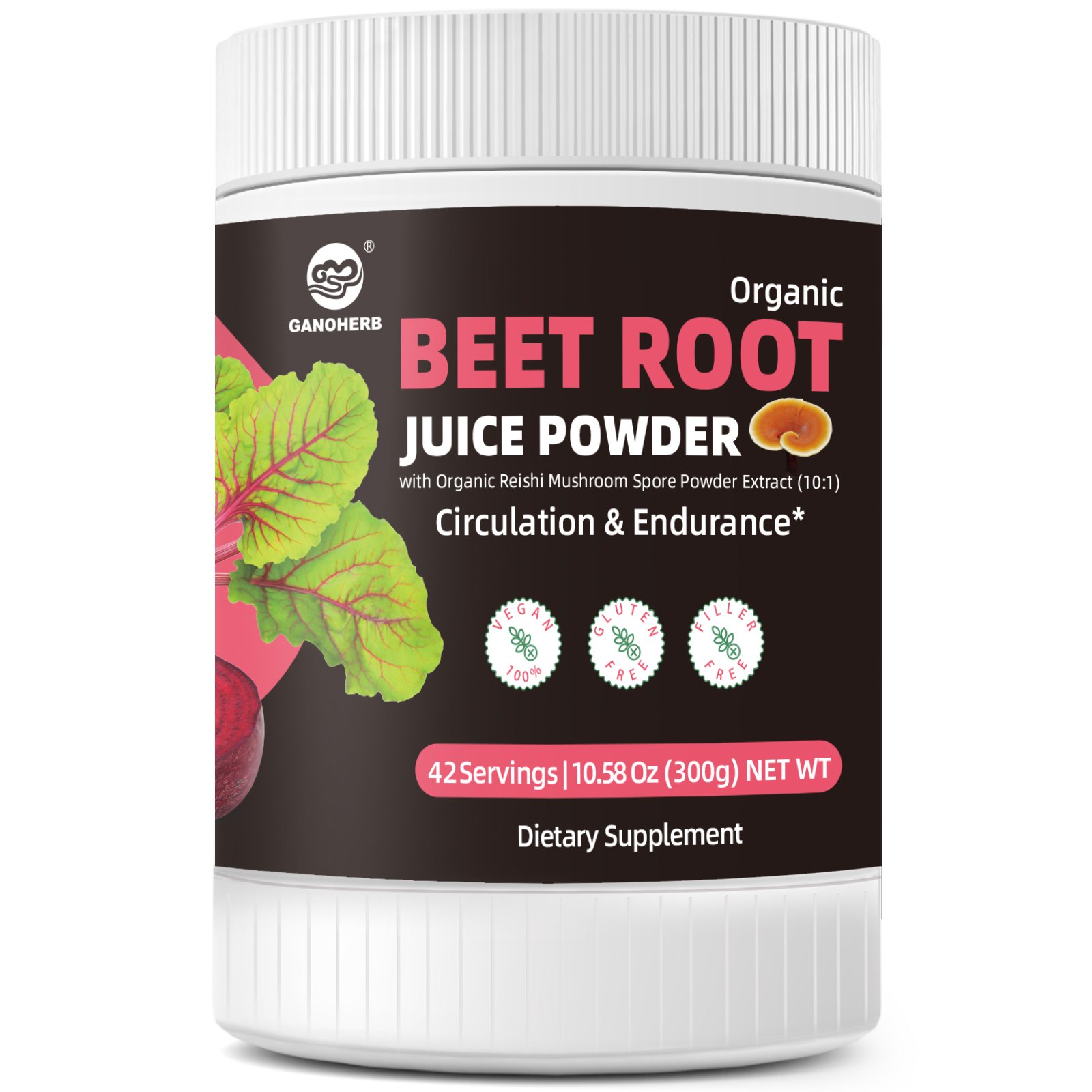 GANOHERB High Concentrated Organic Beet Root Juice Powder With Reishi Mushroom Spore Powder Extract For Circulation