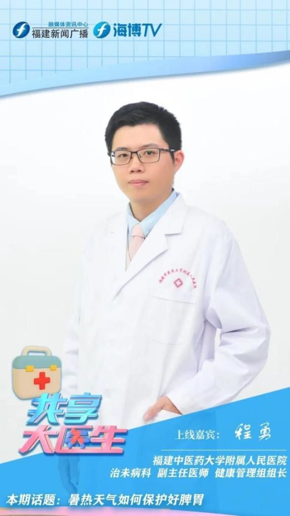 Dr. Cheng Yong, a physician from the Department of Preventive Treatment of Disease at The People’s Hospital Affiliated to Fujian University of Traditional Chinese Medicine, once appeared on the live broadcast of “Great Doctors Live” to popularize how to protect the spleen and stomach in hot weather.