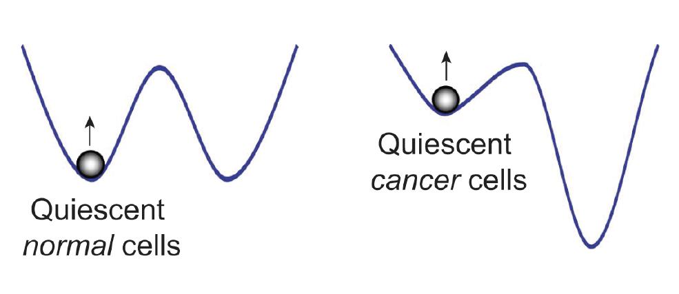 The most important feature of cancer cells is that they can proliferate indefinitely. Therefore, even in the quiescent stage of “slowing down or stopping cell division”, the quiescent depth of cancer cells (as shown on the right) is still shallower than that of normal cells (as shown on the left), so they are more easily to be awakened from dormancy by Reishi mushroom sterols and triterpenes. (Source/Oncotarget. 2017 Jan 13. doi: 10.18632/oncotarget.14634.)