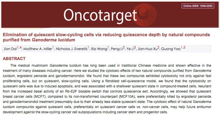 [Source] Dai J, et al. Elimination of quiescent slow-cycling cells via reducing quiescence depth by natural compounds purified from Ganoderma lucidum. Oncotarget. 2017 Jan 13. doi: 10.18632/oncotarget.14634.