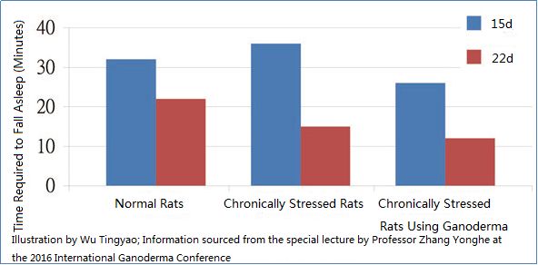 ▲ Evaluating the Effects of Oral Administration of Reishi Mushroom Fruiting Body Water Extract (at a dosage of 240 mg/kg) on Sleep in Rats Under Chronic Stress at Different Time Points (15 and 22 days)