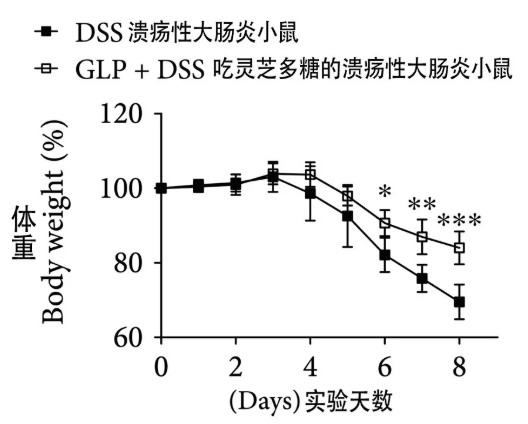 Figure 2 Ganoderma lucidum polysaccharides reduce the symptoms of ulcerative colitis.