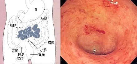 The large intestine includes the cecum, colon, and rectum (left picture): the cecum is connected to the small intestine to prevent the reflux of food entering the large intestine; the colon controls the digestion and absorption function of the large intestine and forms the residue into feces, which are temporarily stored in the rectum for discharge. Ulcerative colitis occurs mainly in the mucosal tissues of the colon and rectum. Endoscopy will show inflammation and ulcers in the colonic mucosa. (Photo/Wikimedia Commons)