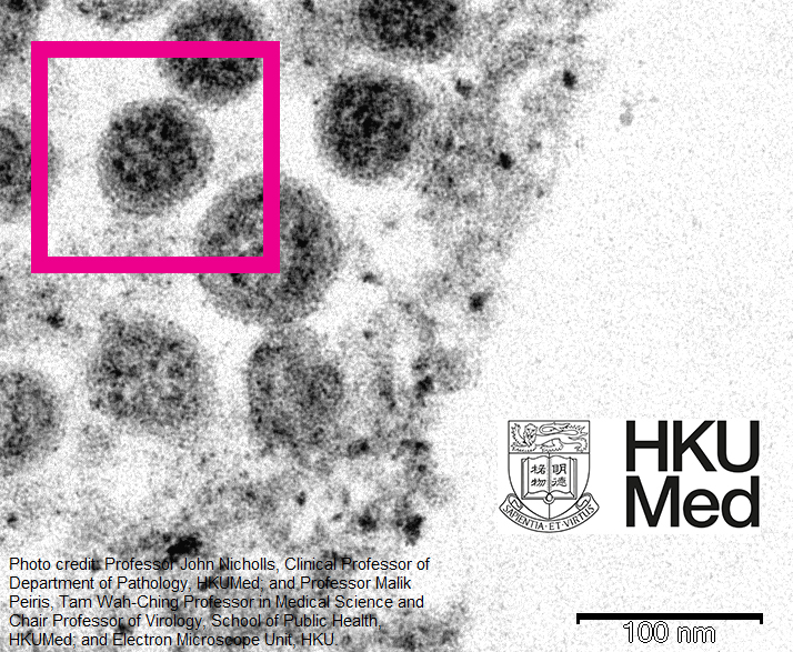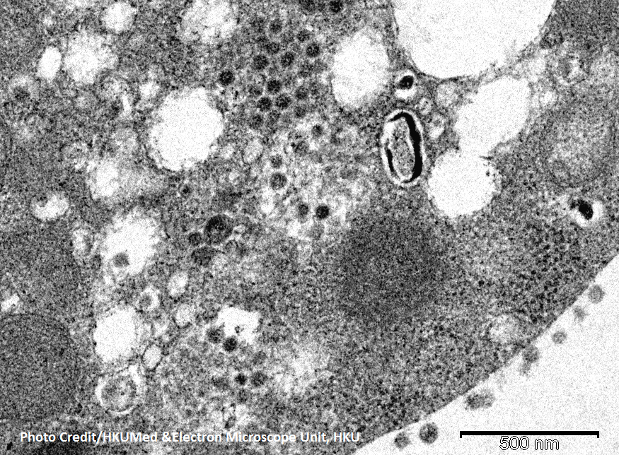 (Photo credit: Professor John Nicholls, Clinical Professor of Department of Pathology, HKUMed; and Professor Malik Peiris, Tam Wah-Ching Professor in Medical Science and Chair Professor of Virology, School of Public Health, HKUMed; and Electron Microscope Unit, HKU.)