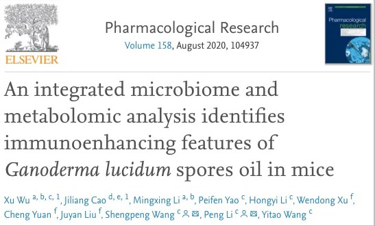 [Data Resource] Xu Wu, et al. An integrated microbiome and metabolomic analysis identifies immunoenhancing features of Ganoderma lucidum spores oil in mice. Pharmacol Res. 2020 Aug;158:104937. doi: 10.1016/j.phrs.2020.104937.