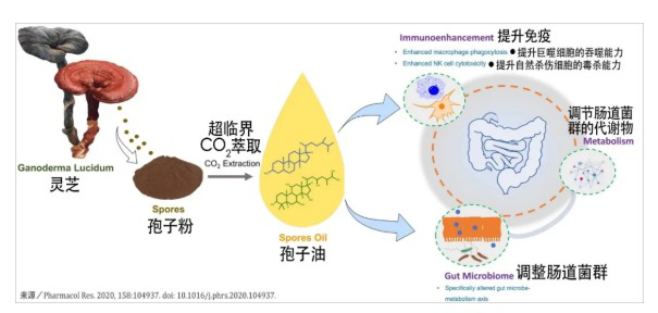 In the past few years, many studies have proved that the immune enhancement effect of Ganoderma lucidum fruiting body extract and spore powder is related to the regulation of intestinal flora and its metabolites. Nowadays, research has finally made up the gap in this aspect of spore oil.