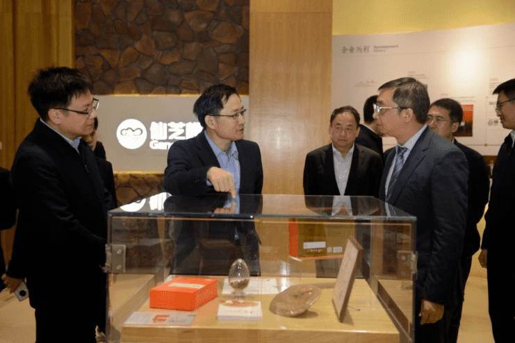 At noon on April 9, Li Meng, Member of the Leading Members’ Group and Vice Minister of the Ministry of Science and Technology, Xie Min, Director-General of the Department of Policy, Regulations and Innovation System Construction, and Xie Xin, Director-General of the Department of Resource Allocation and Management visited GANOHERB Group (one of the first batch of sci-tech commissioner demonstration bases) accompanied by Chen Qiuli, Secretary of the Leading Party Members’ Group and Director-General of Fujian Provincial Science and Technology Department, Lin Zhonglin, Vice Mayor of Fuzhou Municipal People’s Government, Ren Yiwen, Director-General of Fuzhou Municipal Science and Technology Bureau, Huang Jianxiong, Secretary of the Party Working Committee of Fuzhou High-tech Zone, and Wei Bangzhong, Director of the Management Committee of Fuzhou High-tech Zone. They walked into the headquarters of GANOHERB Group to learn about GanoHerb’s achievements in scientific and technological innovation, targeted poverty alleviation and rural revitalization in recent years.