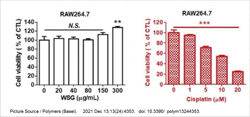 The effect of WSG on tumor inhibition and life protection in animal experiments is no less than or even better than that of cisplatin alone or in combination with cisplatin, which is largely due to the fact that WSG (Water Soluble Polysaccharide derived from Ganoderma lucidum) is capable of suppressing cancer cells as soon as they appear.